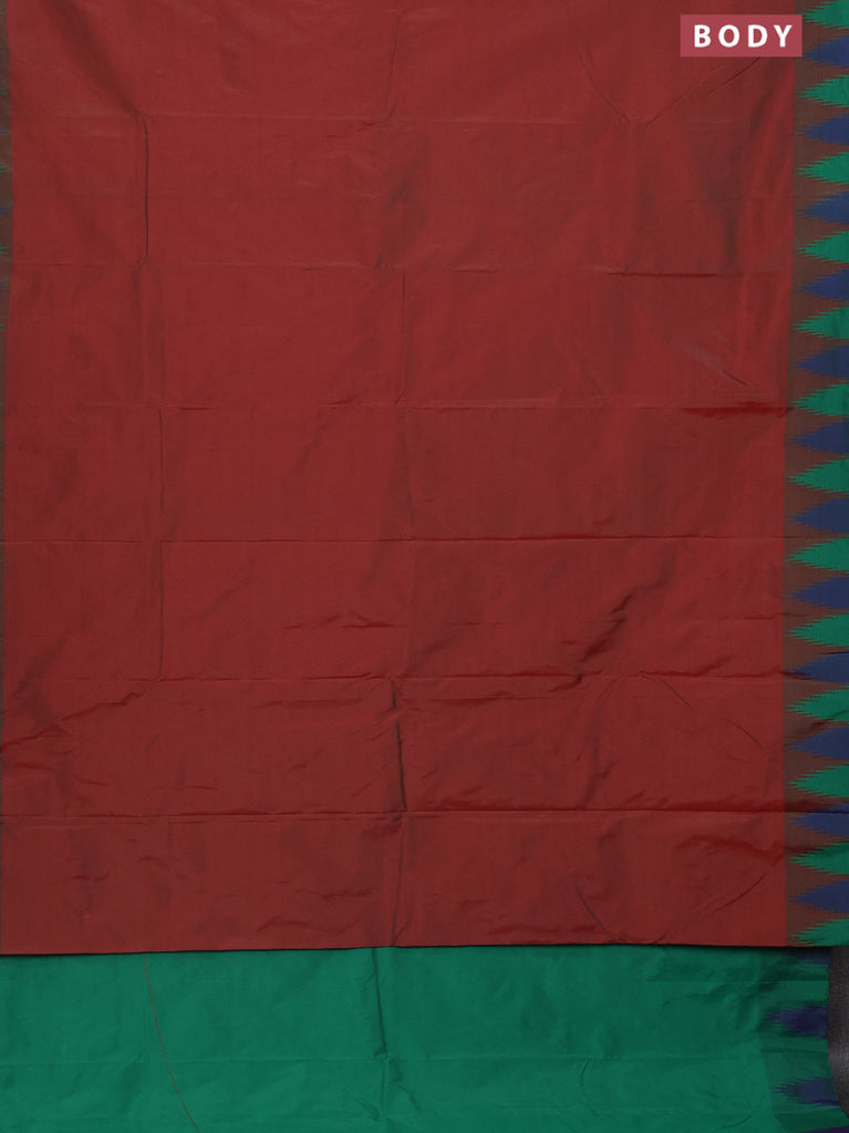 Arani semi silk saree maroon shade and dual shade of green with plain body and temple design border