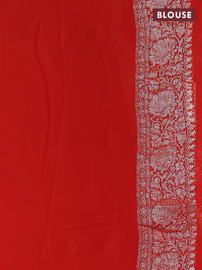 Banarasi chiffon silk saree red and grey with silver zari woven buttas and silver zari woven border