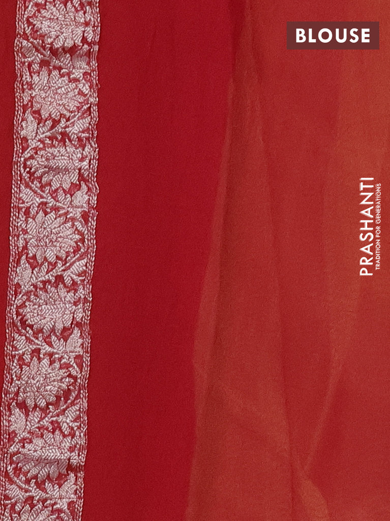 Banarasi chiffon silk saree orange with silver zari woven buttas and floral silver zari woven border