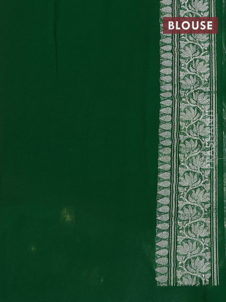 Banarasi chiffon silk saree maroon and green with silver zari woven buttas and silver zari woven border