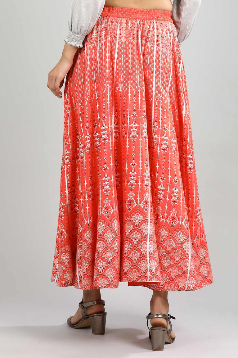 Coral straight cut palazzos with geometric print detail and elasticated back.