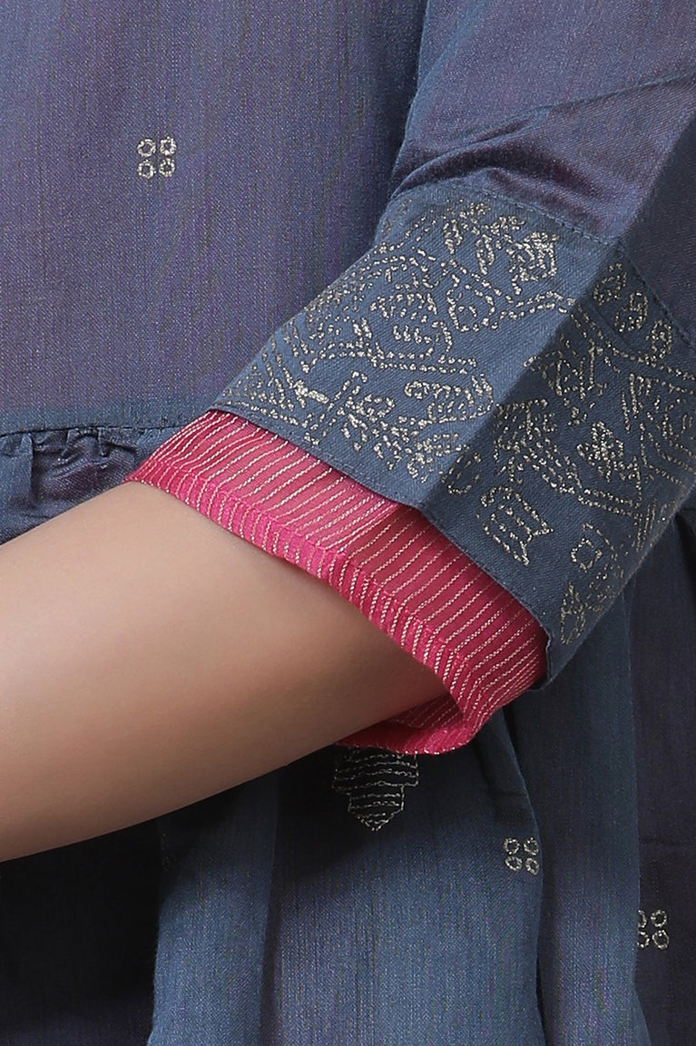 Blue Chanderi Flared Kurta And Culottes Set