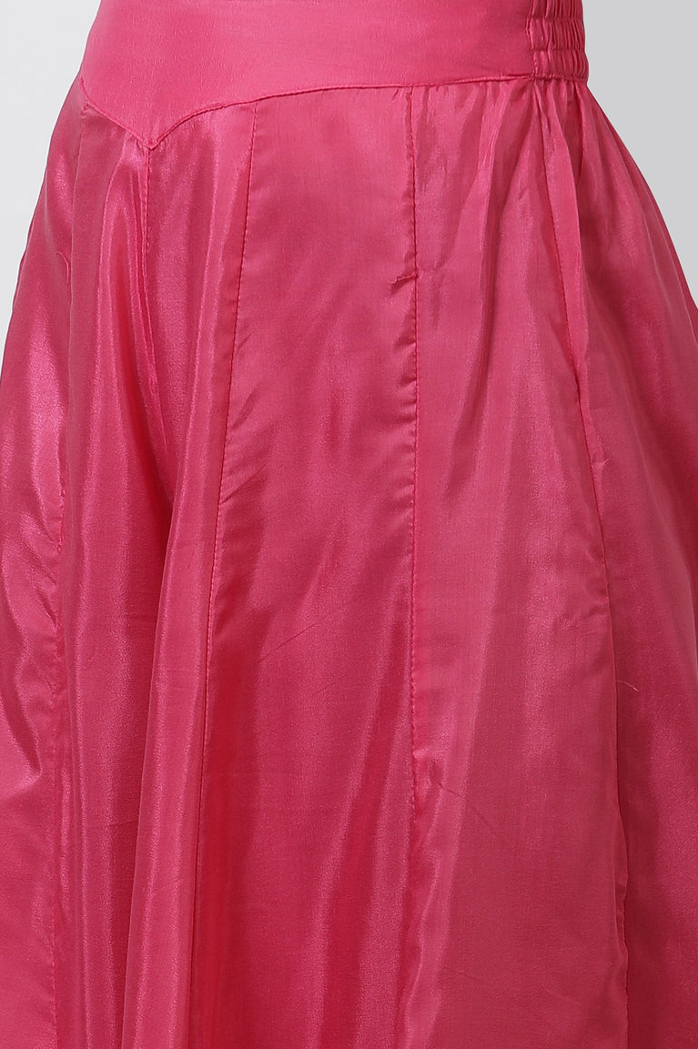 Blue Round Neck Chanderi Kurta In Flared Silhouette And Gathered Waist. It Is Paired With Contrasting Flared Culottes.