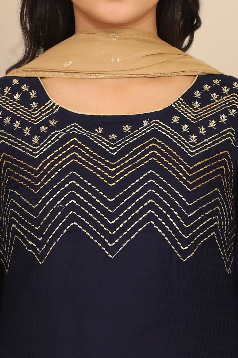 Blue Embroidered Straight kurta-Parallel Pants-Dupatta Set