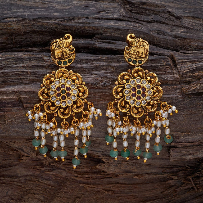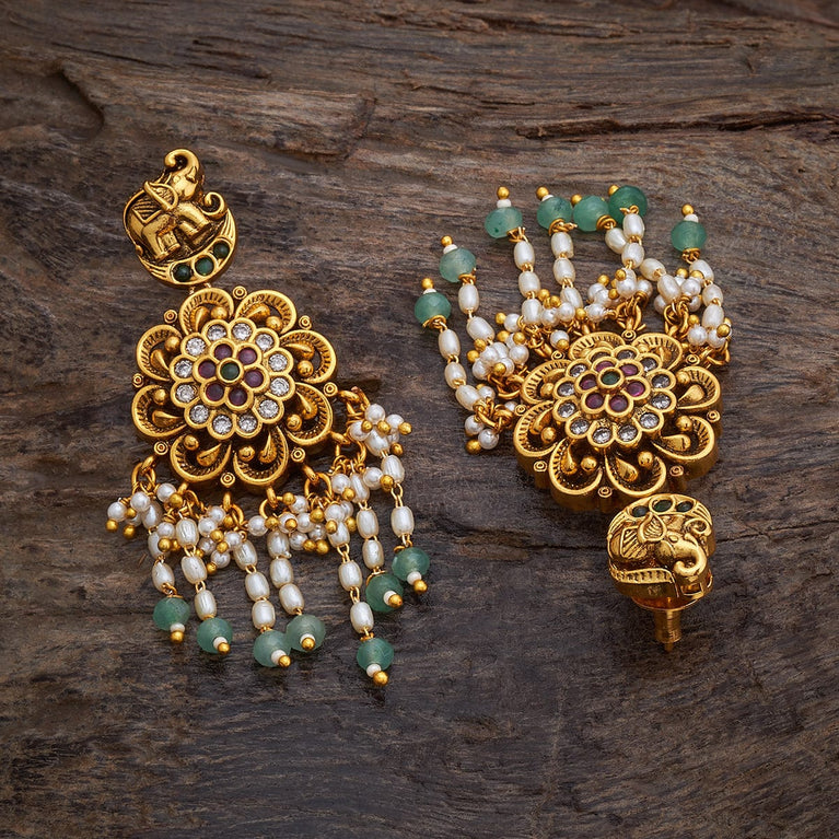 Kushal's Fashion Jewellery Flower Design Antique EarringThe exclusiveness and appeal of these antique earrings are purely awe-inspiring. These gracefully carved earrings are bejewelled with synthetic stones and rightly complement traditional apparel. The eye-catching design of these antique earrings embraces the Indian tradition stylishly and enhances your beauty on every occasion. Wear them with your favourite antique bangles and Payal and receive many praises.
