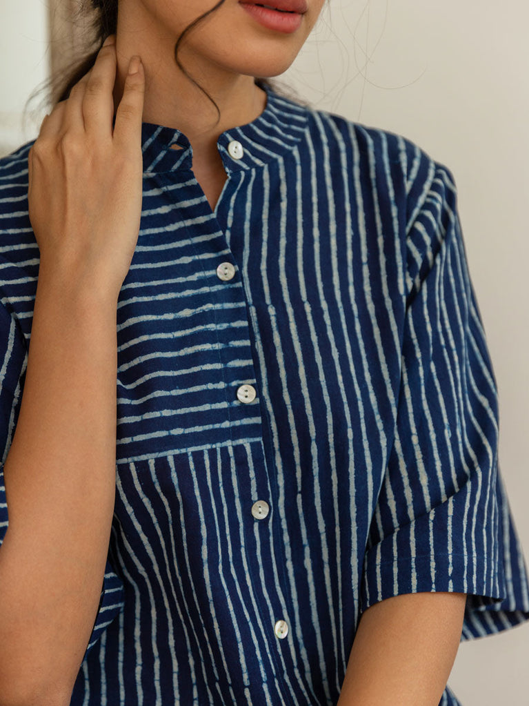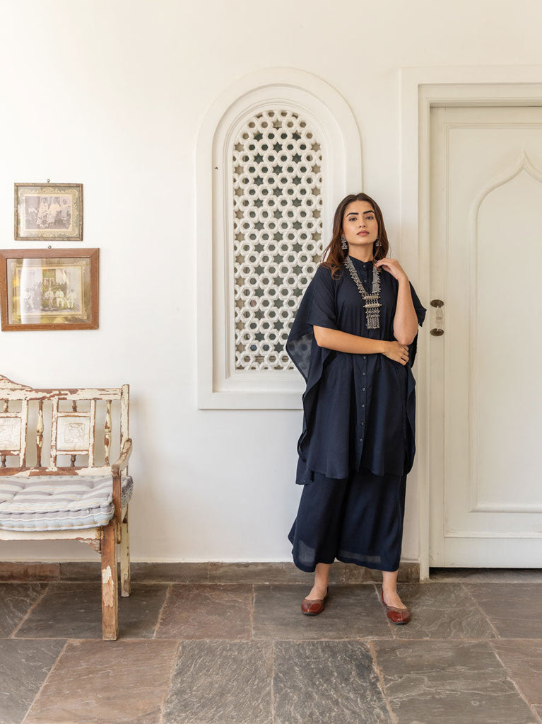 Set of 2 - Keya Indigo Cotton Tunic and Palazzo