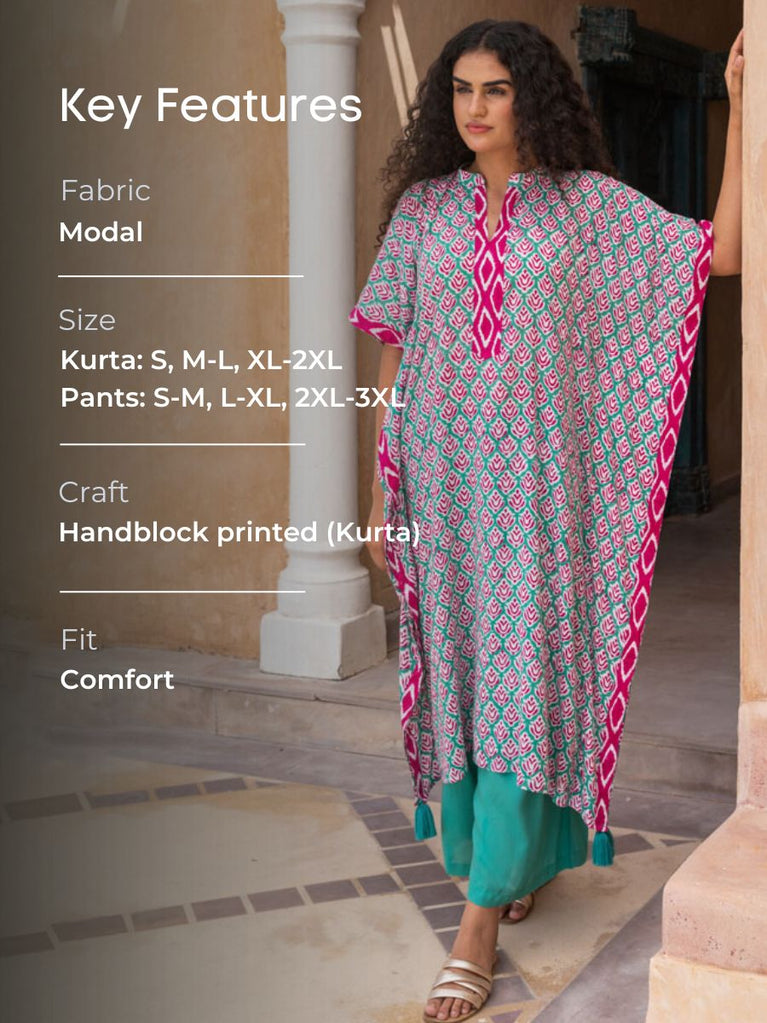 Set of 2 - Kaveri Block Printed Kurta and Lantern Pants