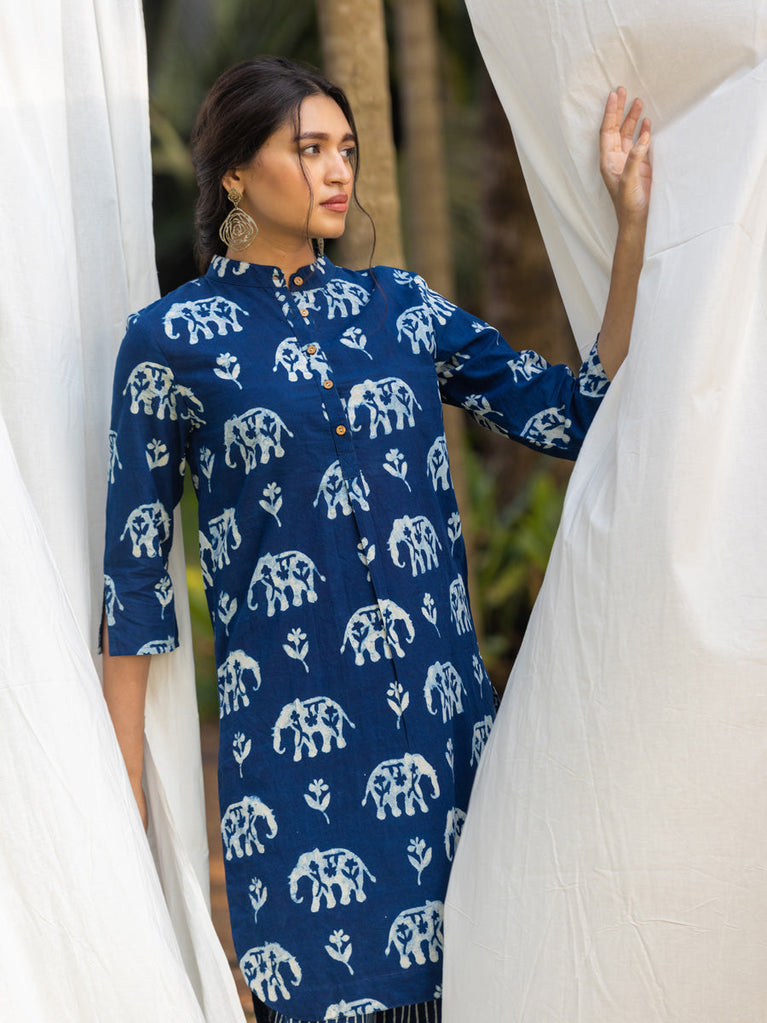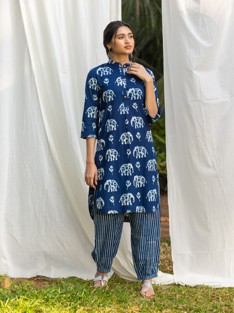 Set of 2 - Tarang Indigo Cotton Kurta with Pants