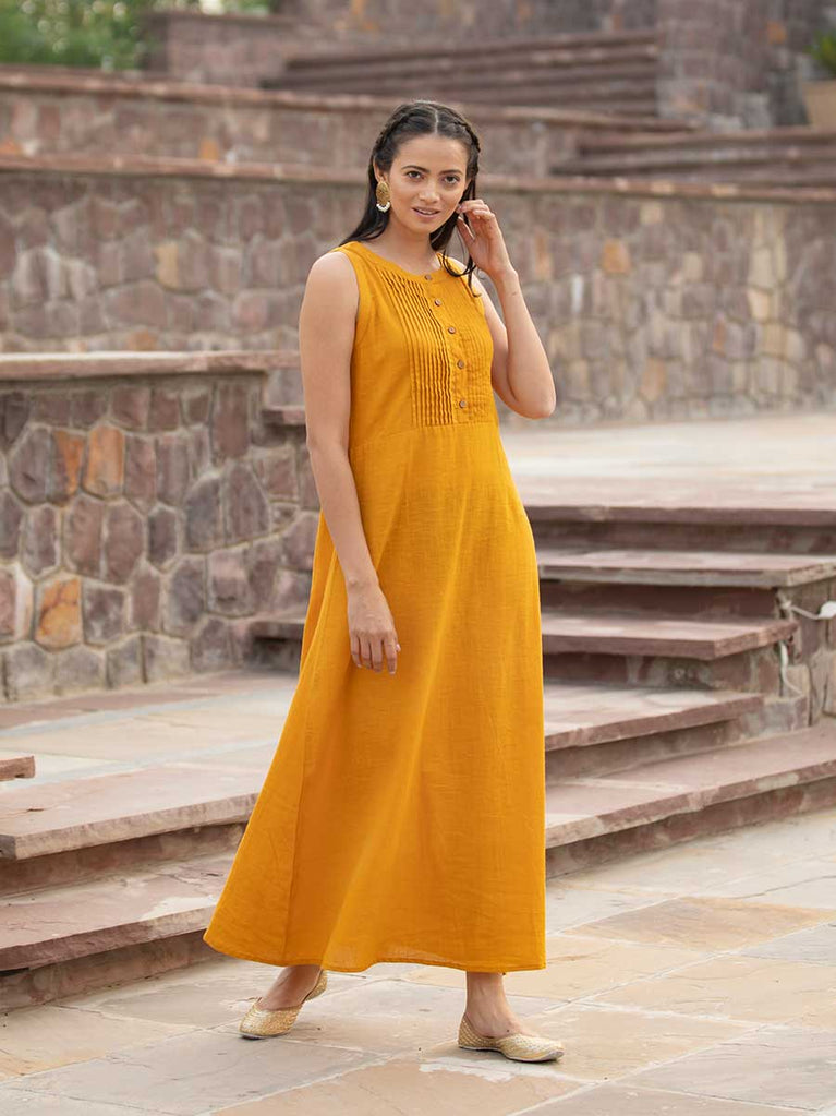 Set of 2- Sunheri Pintuck Dress With Angrakha Jacket