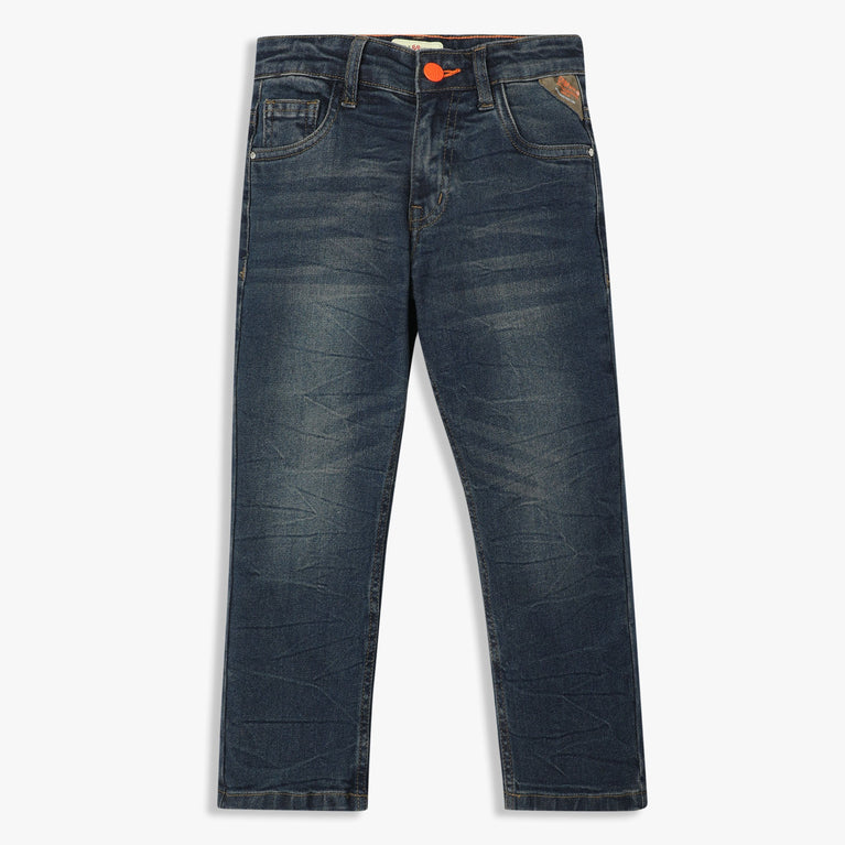 Boys Slim Fit Casual Denim With Crackel Effect