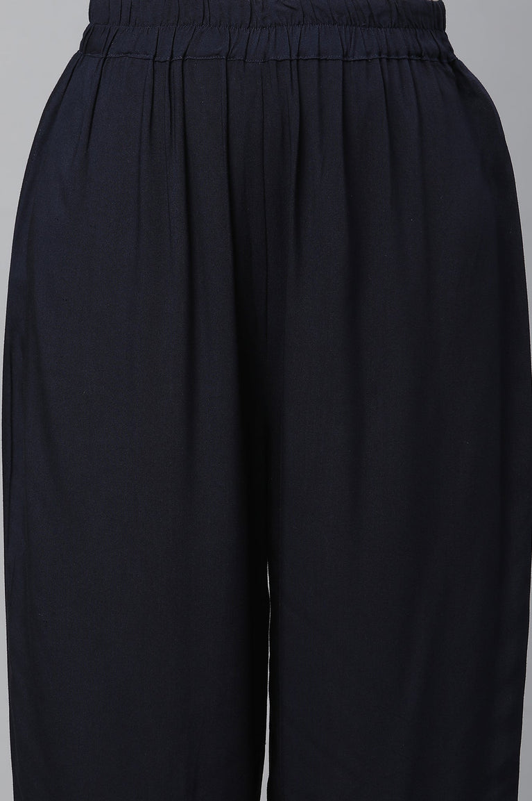 Add a touch of modern artistry to your ethnic wardrobe with this blue A-line kurta and slim pant set. Crafted from soft rayon, it drapes effortlessly, offering a blend of style and comfort. The geometric print infuses contemporary flair, while the A-line silhouette ensures movement and ease. Slim pants provide a sleek finish, making this kurta set for women ideal for both casual outings and semi-formal occasions. Lightweight and breathable, it’s a perfect pick for day-to-evening transitions.