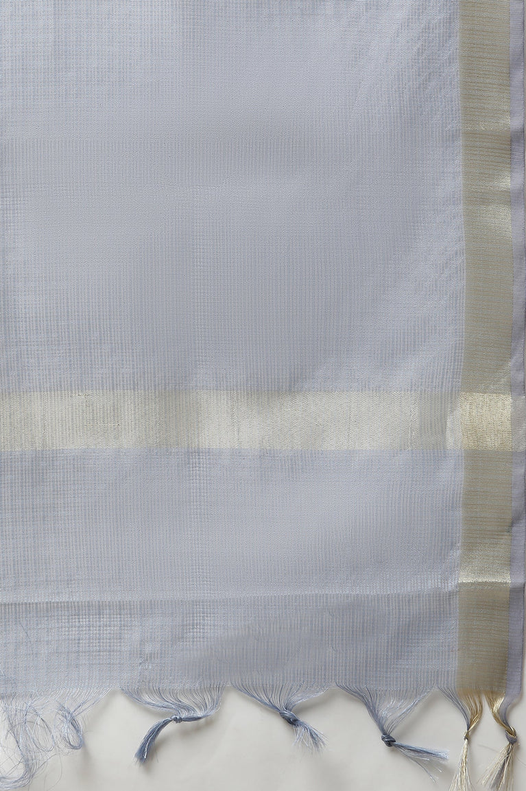 Blue Zari Embroidered Kurta, Pants and Kota Dupatta Set