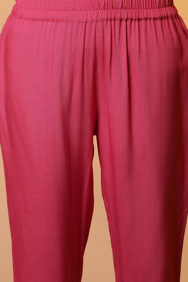 Prep Yourself For A Gathering In This Elegant And Stylish 3 Piece Ethnic Set. The Set Includes Yarn-Dyed A-Line Kurta Embellished With Bead Work And Mid-Rise Ankle Length Trousers With Banaras Dupatta.