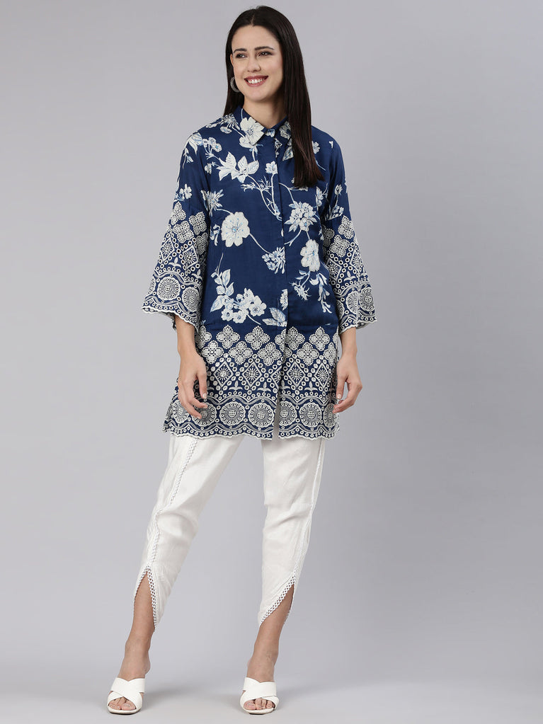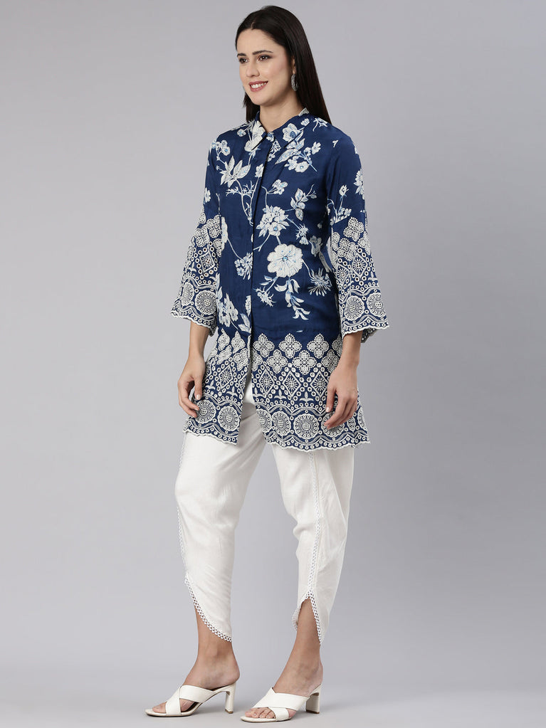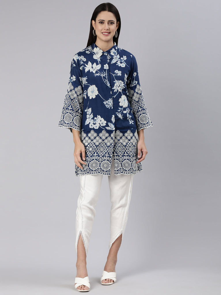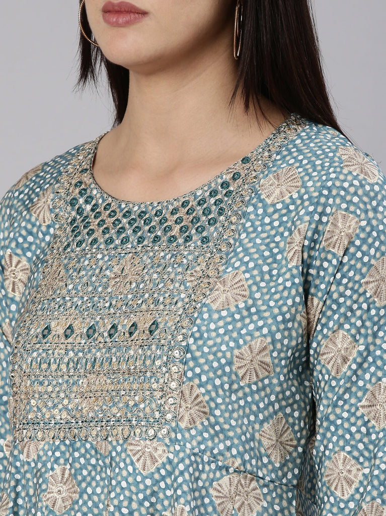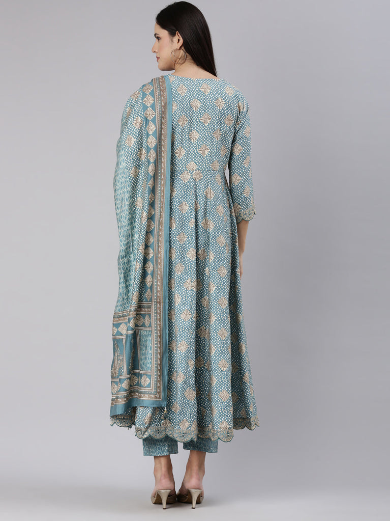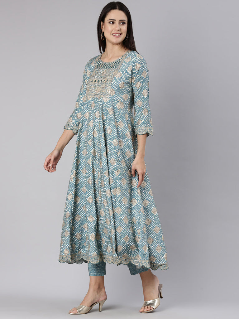 Neerus Blue Regular Knee Length Printed Readymade Suits