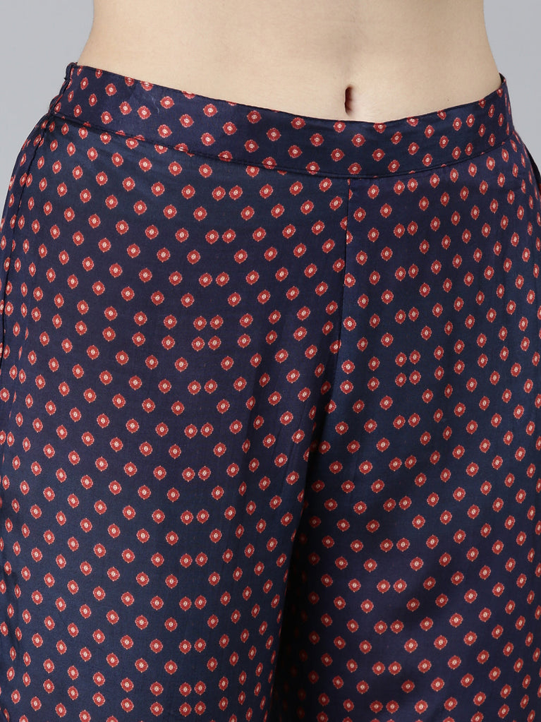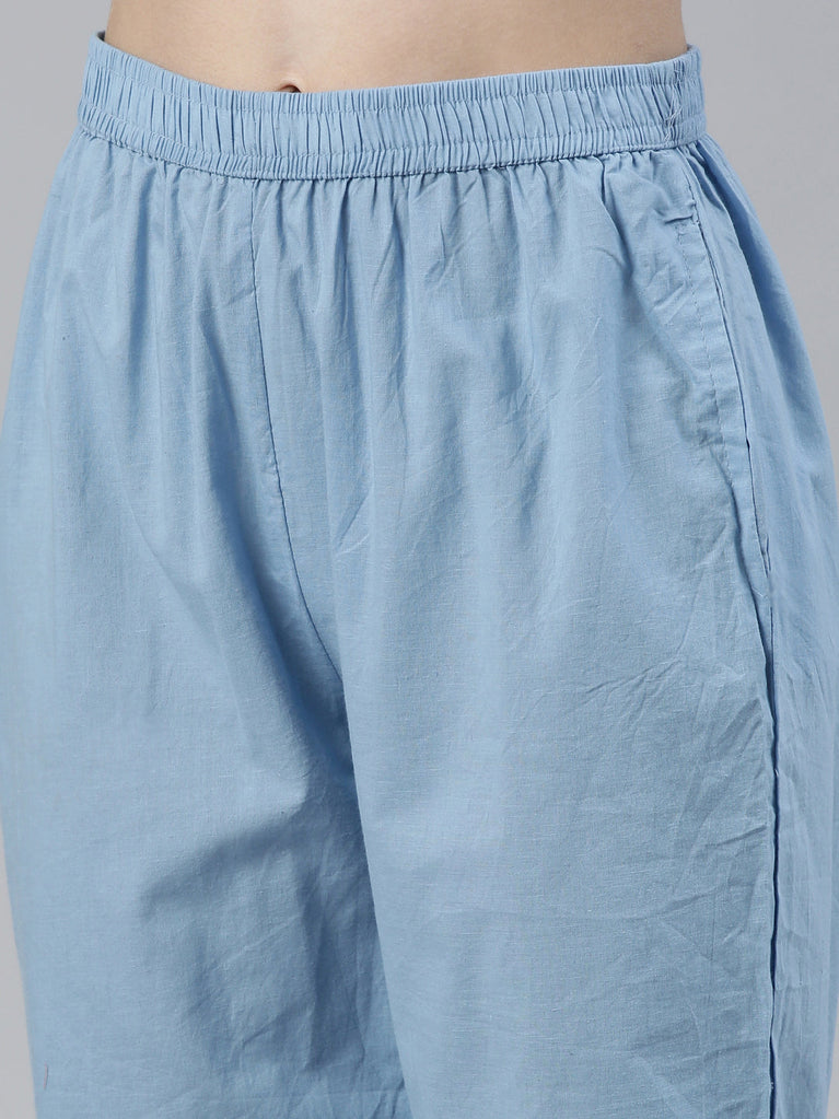 Neeru's Blue Regular Straight Printed Kurta And Trousers