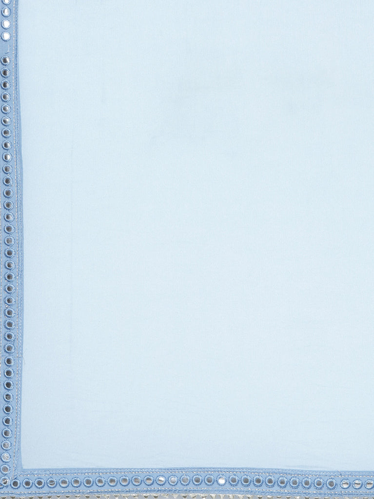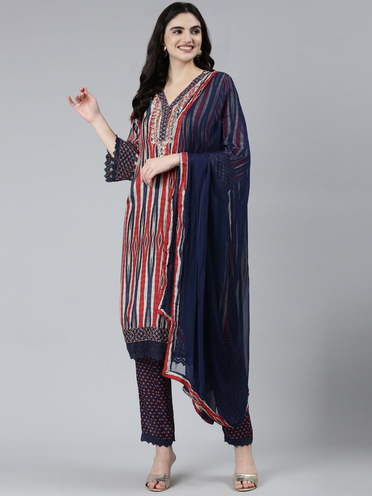 Neeru's Blue Regular Straight Chevron Kurta Sets And Trousers With Dupatta