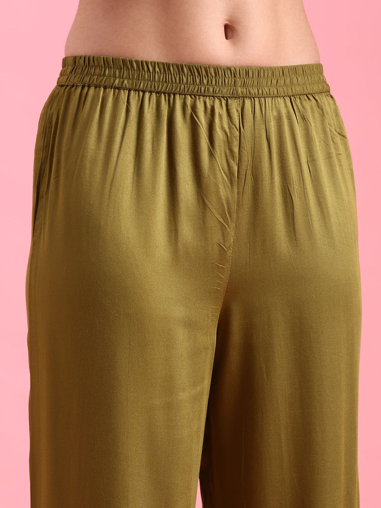 Mehadi Green Rayon Two Piece Set
