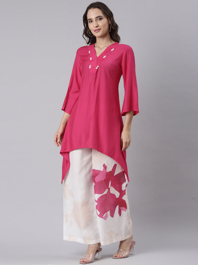 Magenta muslin C cut two piece set