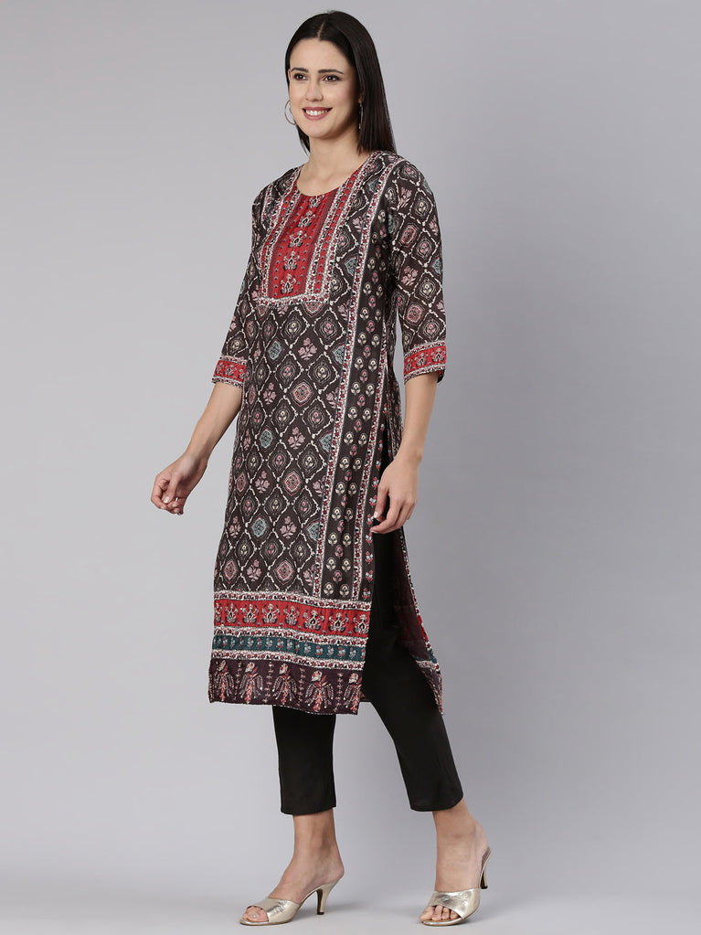 Neeru's Brown Regular Straight Printed Readymade suits