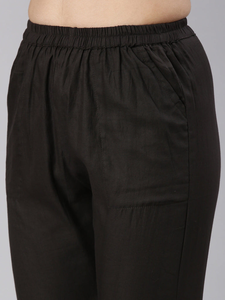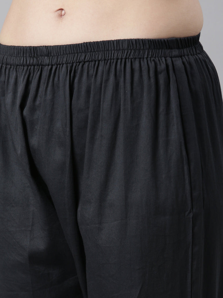 Neeru's Black Color Rayon Fabric Printed Kurta And Trouser