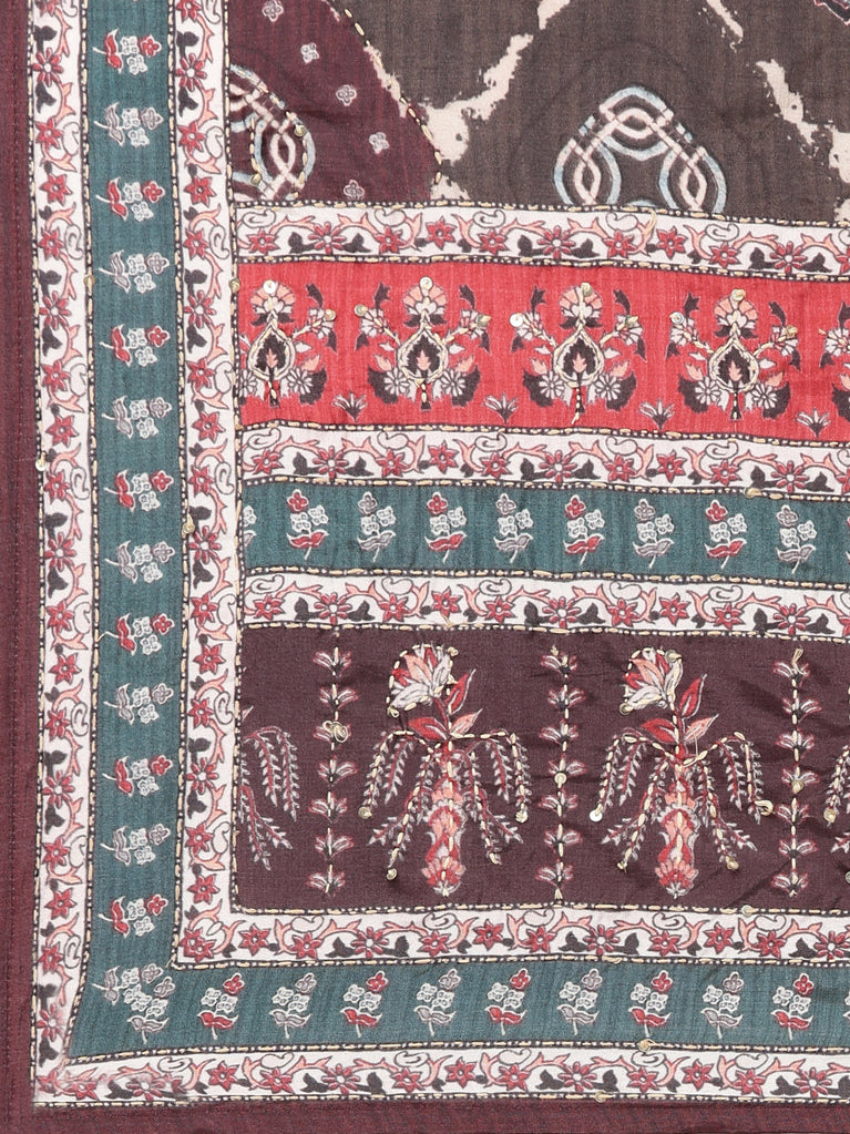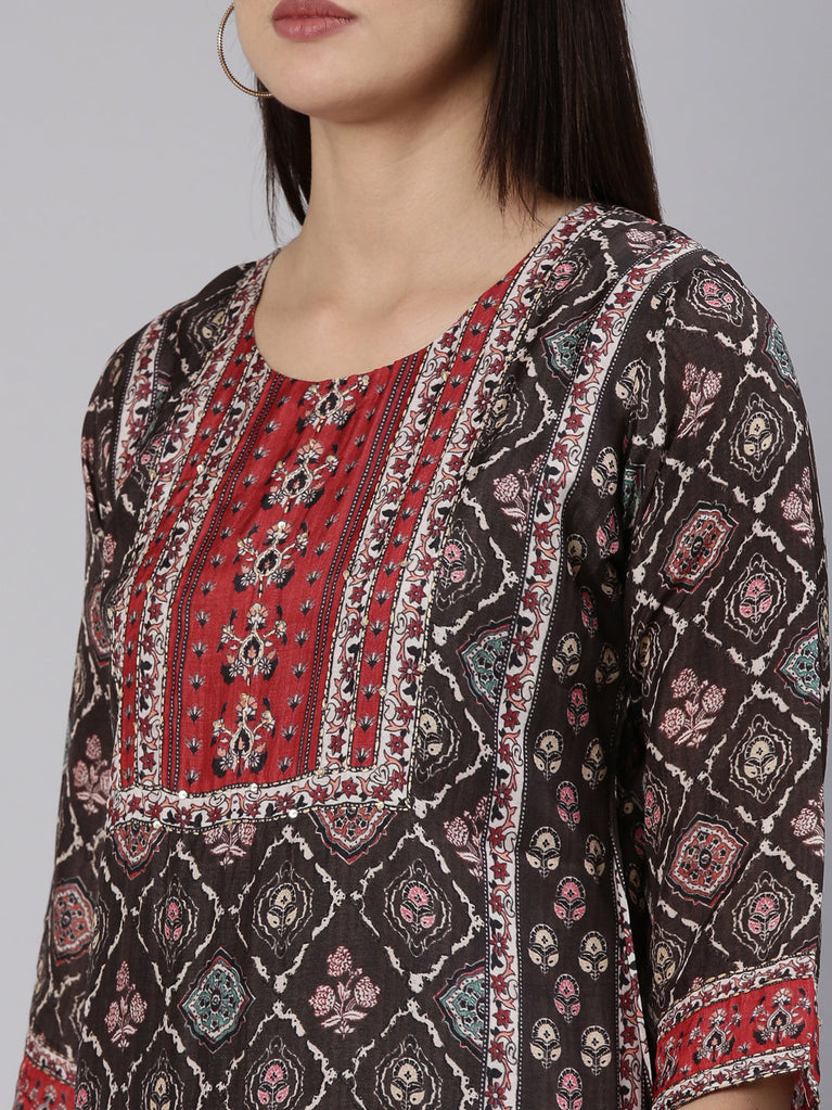 Neeru's Brown Regular, Straight-Cut Printed Readymade suits - A Sophisticated Combination Of Elegance And Style.