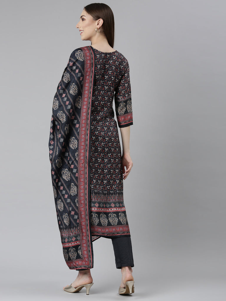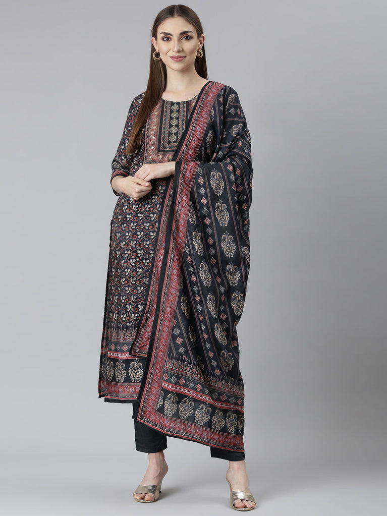 Neeru's Black Regular Straight Floral Readymade Suits