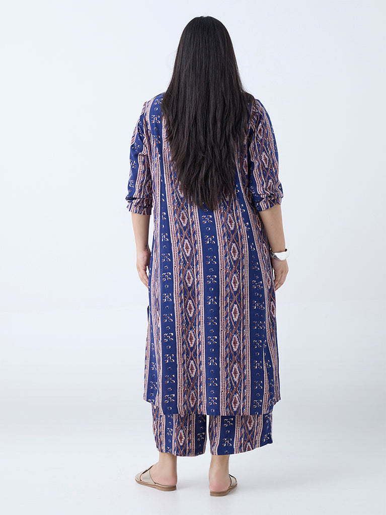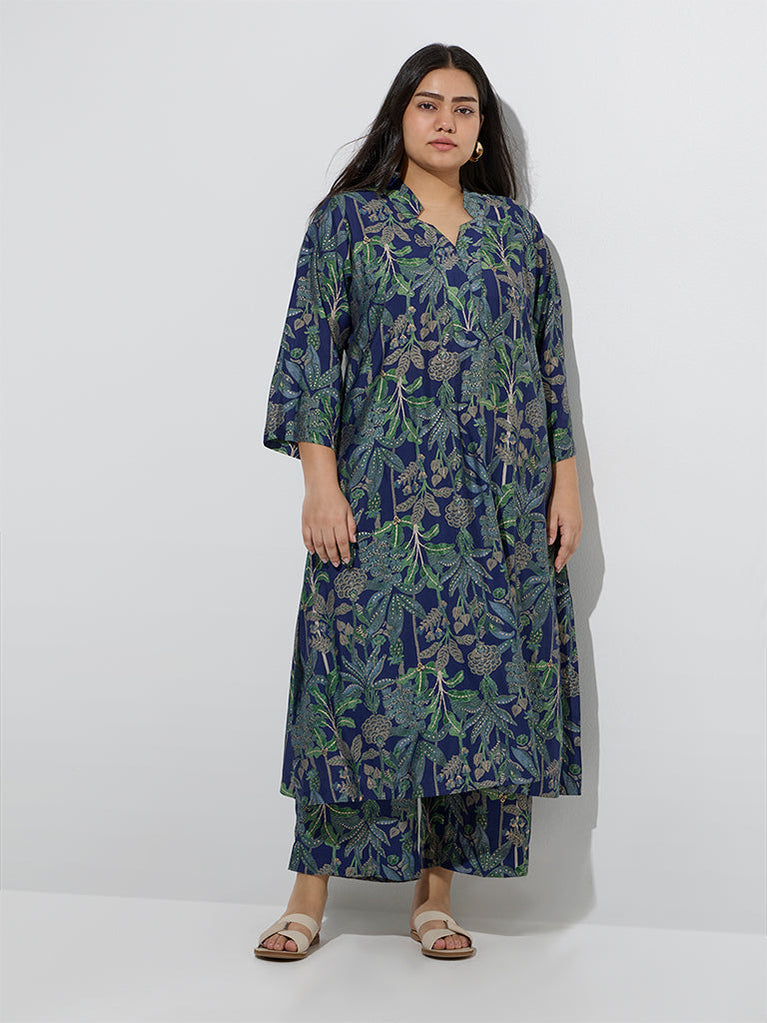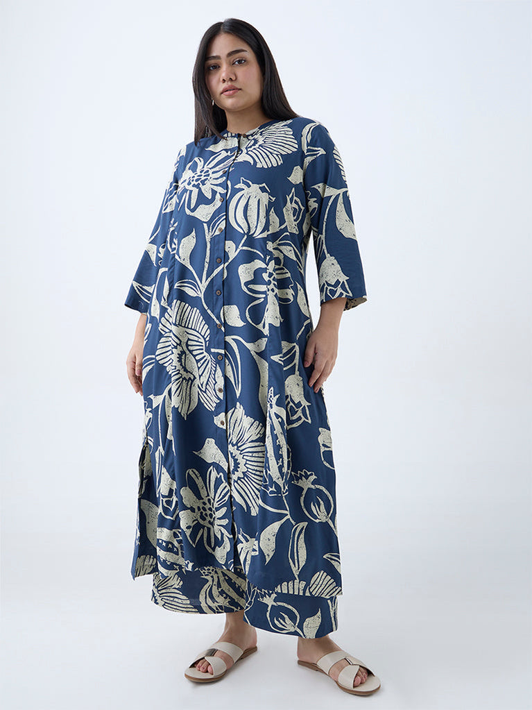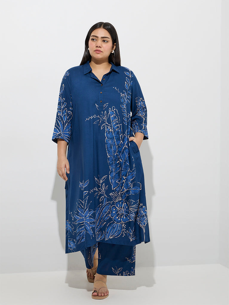 This indigo kurta from Diza is brought to life with graceful botanical prints that offer a refreshing contrast against its deep base. Tailored from a breathable fabric in a flattering A-line silhouette, it’s styled with a crisp collar, a short button-down placket, and three-quarter sleeves for a polished finish. Thoughtfully designed with a slip pocket, it blends everyday ease with artistic flair.