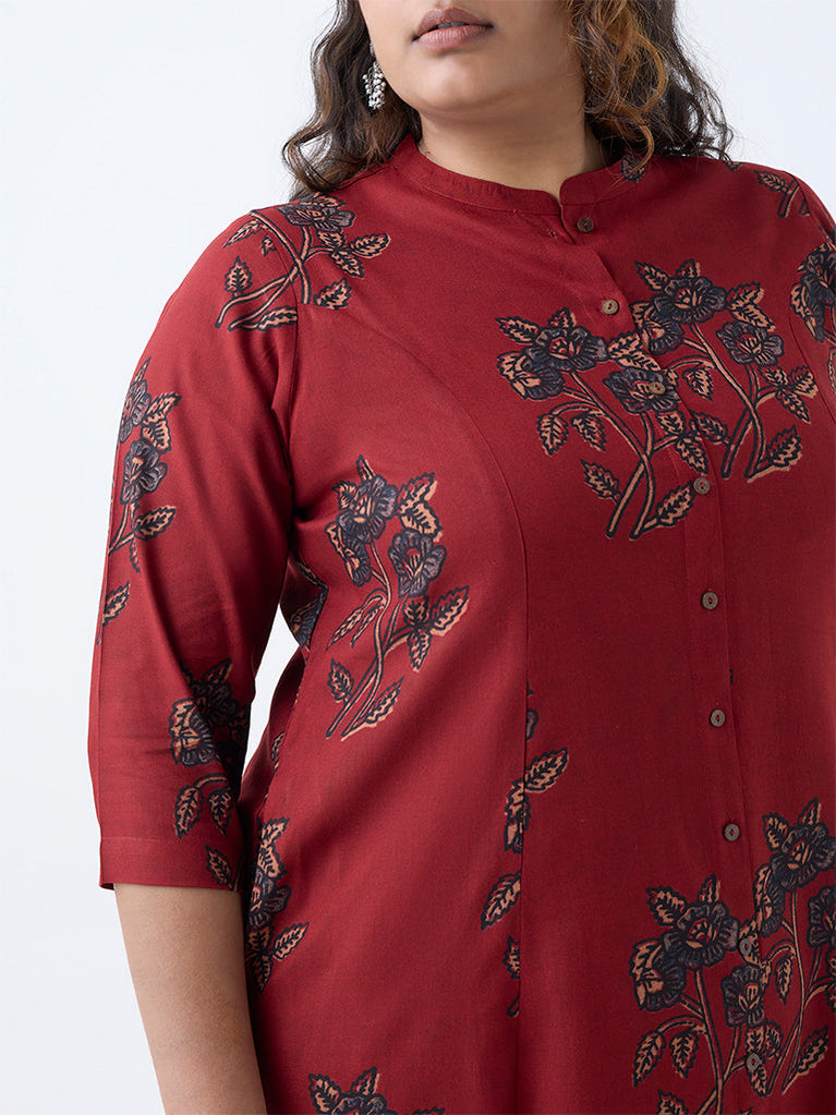 Turn heads in vibrant style with this striking maroon A-line kurta from Diza. Adorned with an all-over botanical print, it features a mandarin collar, button-down front, three-quarter sleeves, and a practical side pocket. Perfect for casual brunches, office days, or relaxed weekend plans, this versatile kurta blends everyday comfort with subtle statement-making charm.
