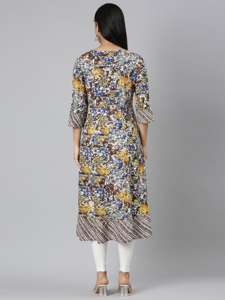 Neerus Brown Anarkali Casual Floral Straight Kurtas Find the perfect balance of comfort and style with these flattering kurtas. Exude effortless elegance with every step.