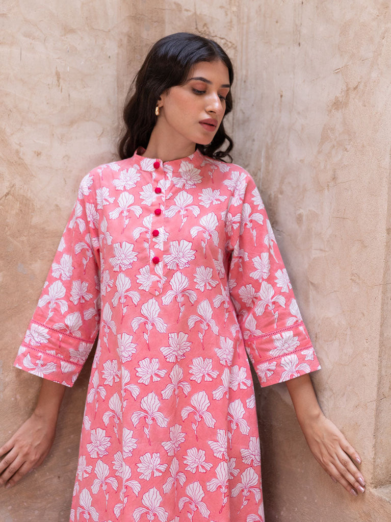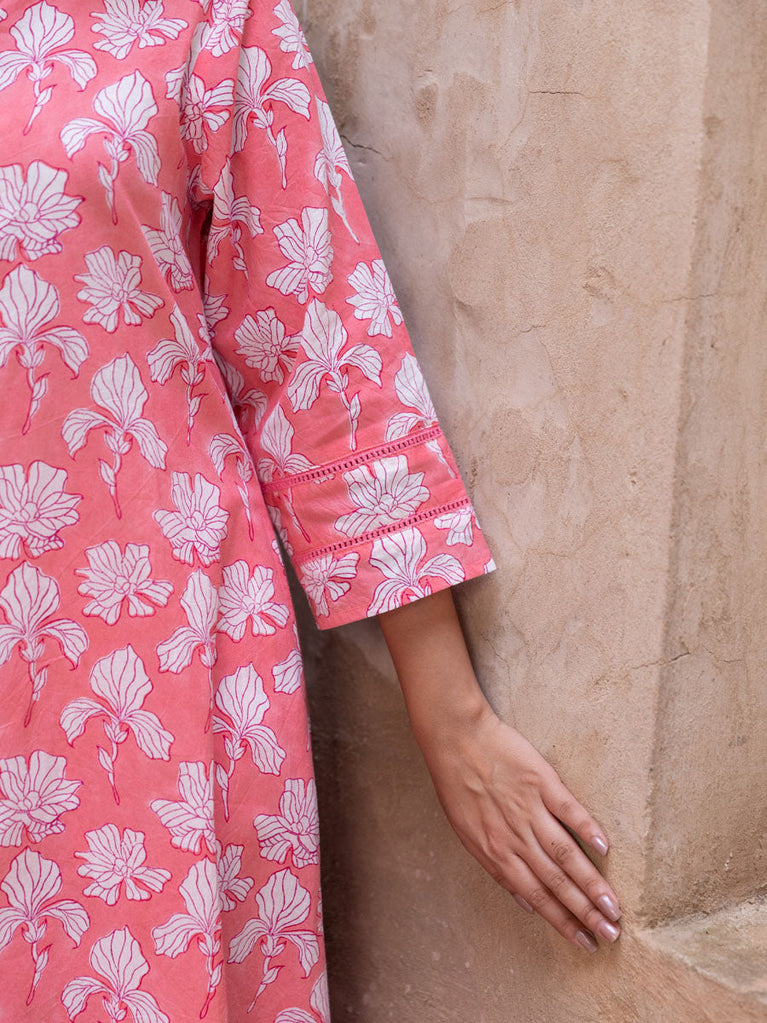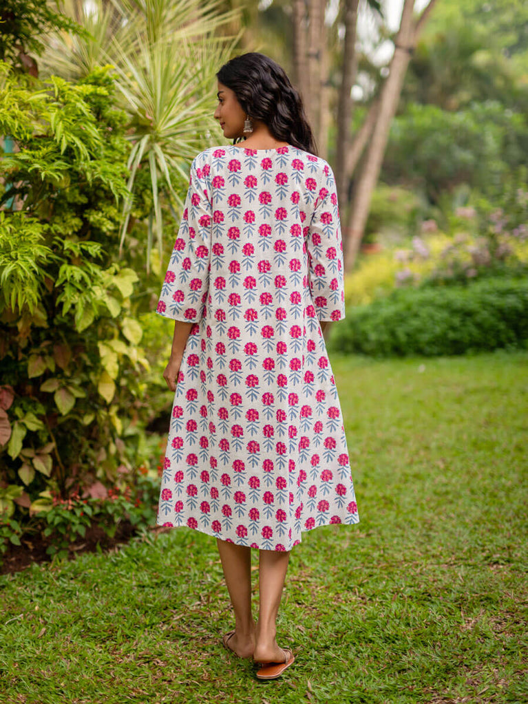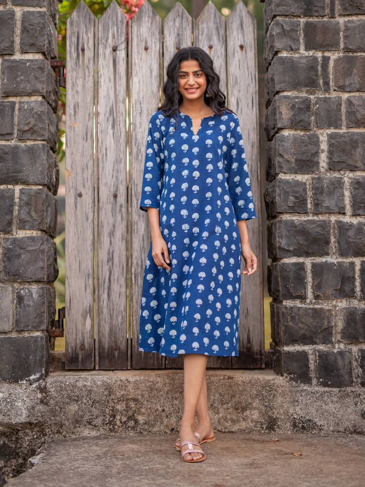 Kavya Block Printed Sleeveless Cotton Dress/Kurta