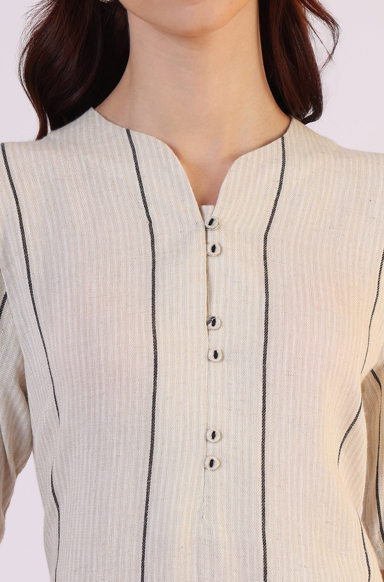 Light Beige Yarn Dyed Striped Short Sleeves Cotton Blend Kurta