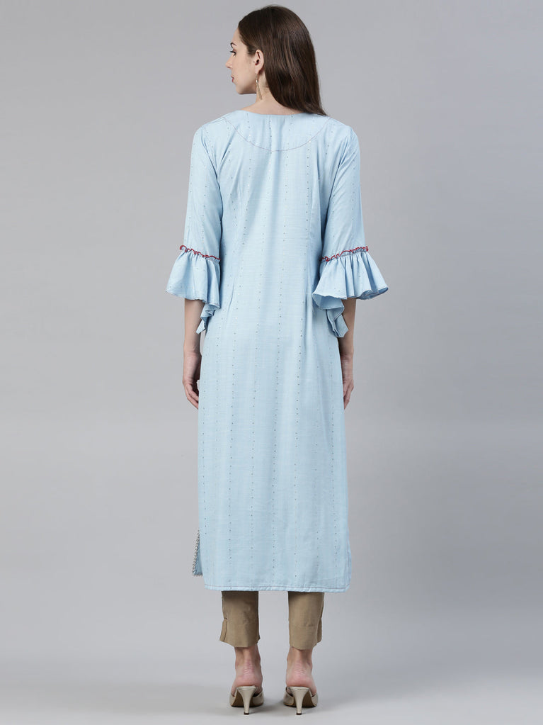 Neeru's Blue Regular Straight Embroidered Kurtas