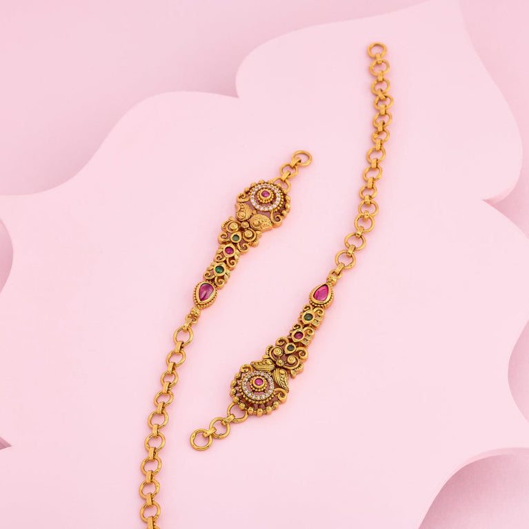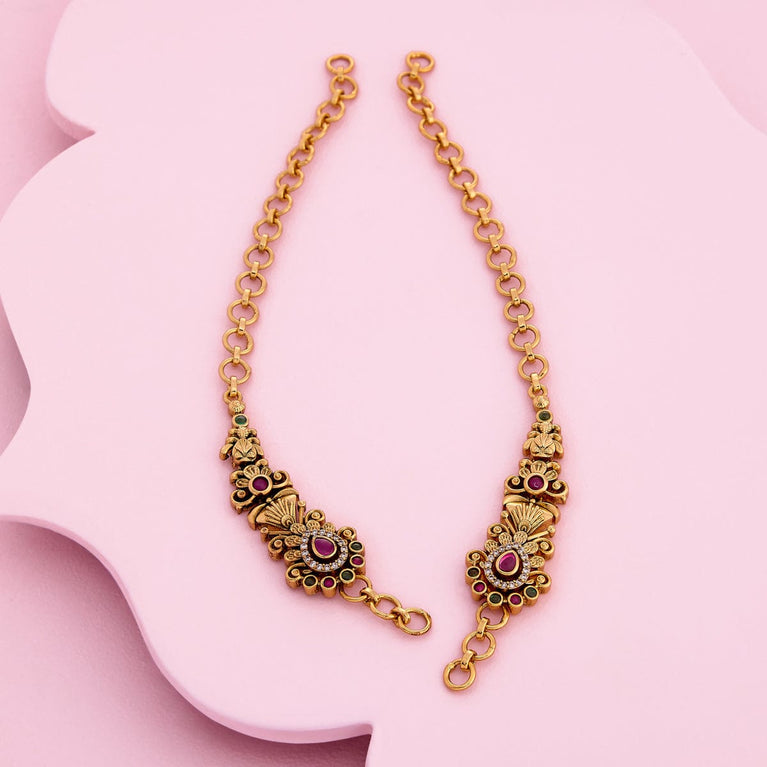 Kushal's Fashion Jewellery Festive Paisley-Manga Antique NecklaceWe present you with Kushal's Fashion Jewellery most beautiful antique necklace. This beautiful necklace is pure art, crafted with great attention to detail. You will look like a diva when you pair this antique necklace with your gorgeous outfit. Get your hands on this beautiful jewellery before it's out of stock!