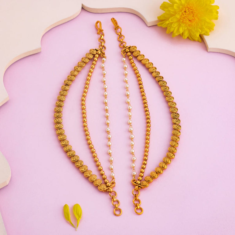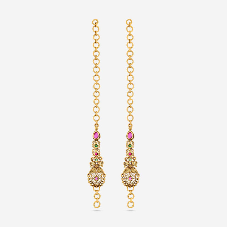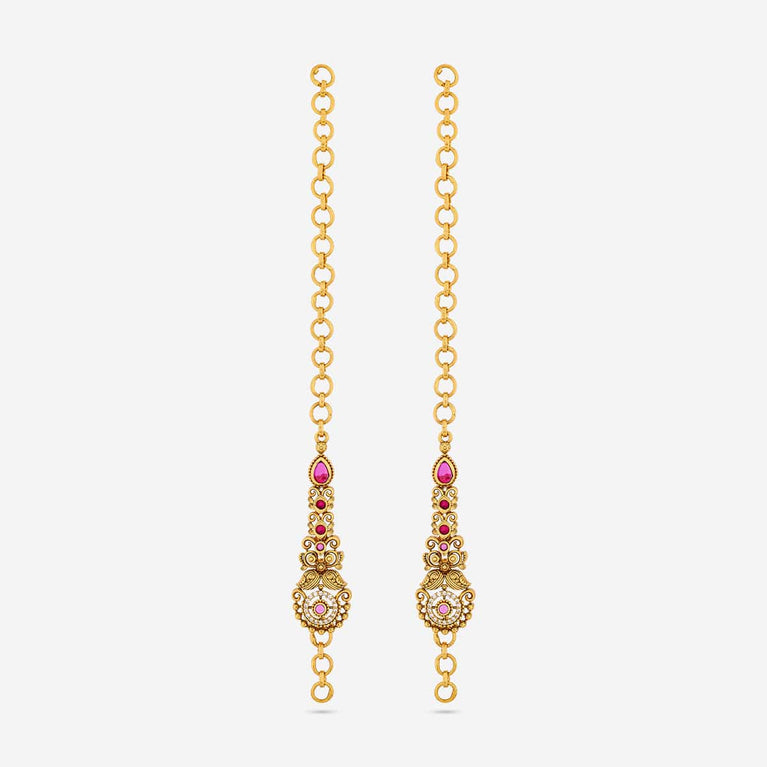 Antique Clip On NathSteal the spotlight with Kushal's antique nath. Featuring vibrant ruby or classic white stones and a chic gold polish, it’s designed to impress. Crafted from durable copper alloy with a secure pressing mechanism, this nath is both stylish and reliable. Perfect for adding a subtle yet sophisticated flair to any outfit.