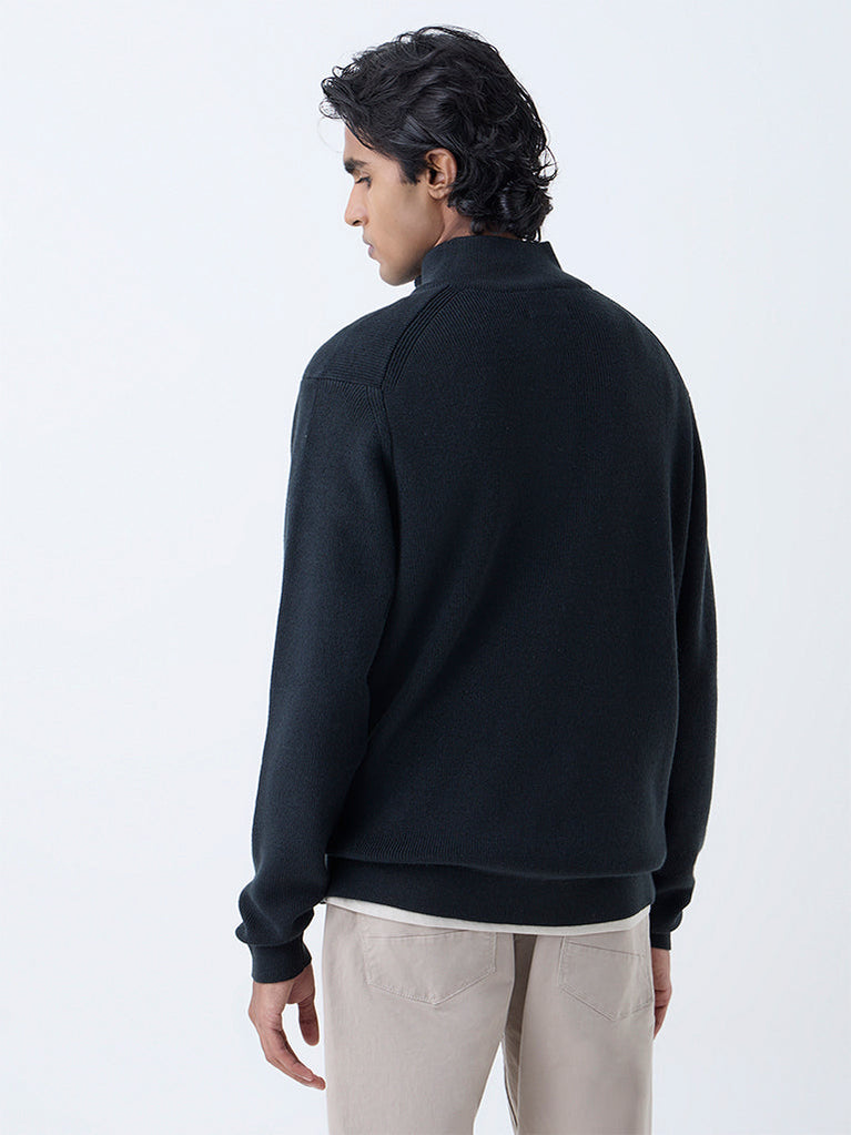 Enhance your winter layering with this emerald green sweater from Ascot. Spun from a textured knit, it features a high neck with zip-and-button closure and full sleeves, all shaped in a relaxed fit. A versatile essential, it brings warmth and understated polish to modern wardrobes.