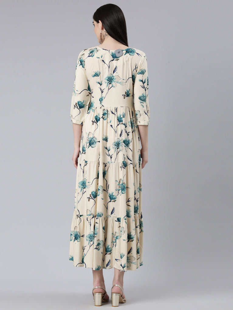 Neeru's Brown Straight Casual Printed Maxi Dresses