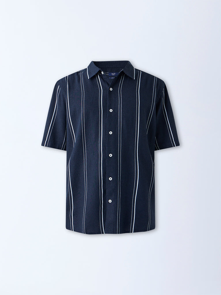 Ascot Navy Striped Relaxed-Fit Shirt