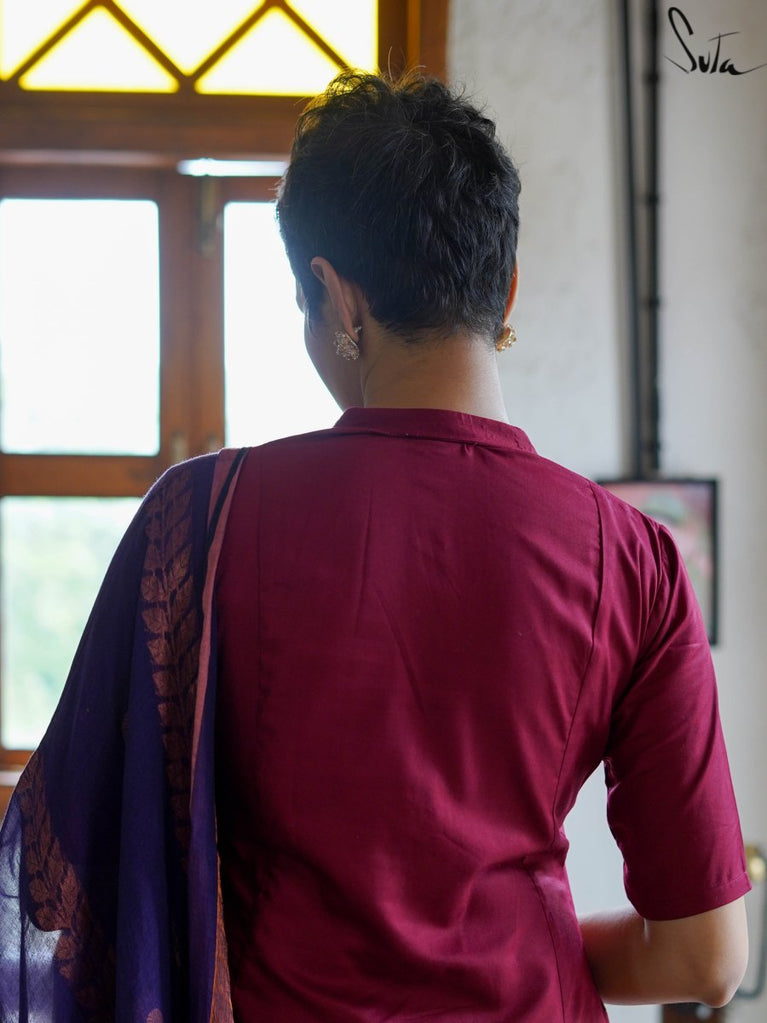 Discover your hidden facets when you wear this block-printed cotton maroon shirt.
