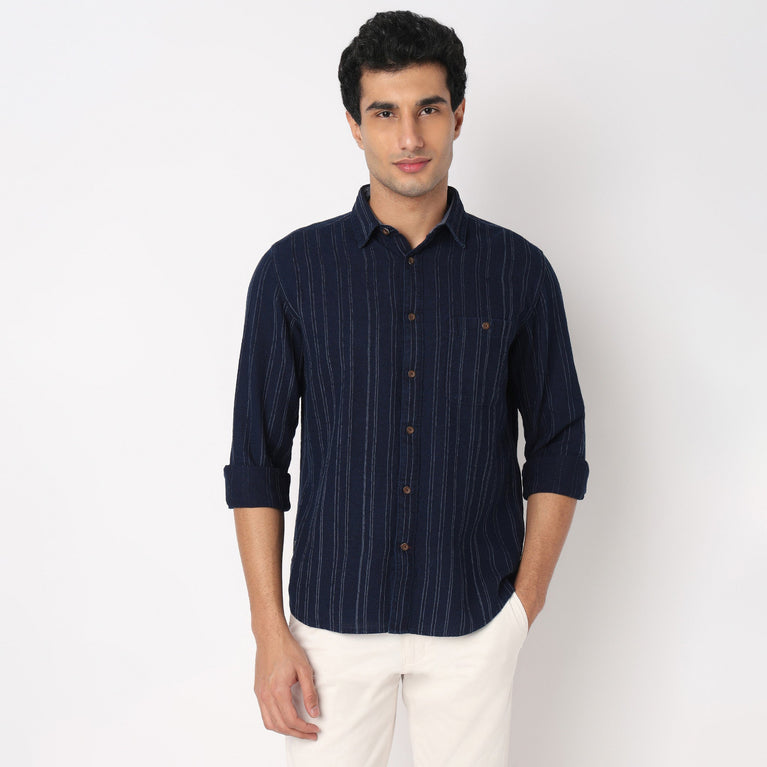 Elevate your casual wear with our Cotton Striped Polo Neck Shirt, designed for men who appreciate both comfort and style. Crafted from soft, woven cotton, this shirt features a trendy striped pattern that adds a touch of sophistication to any outfit.