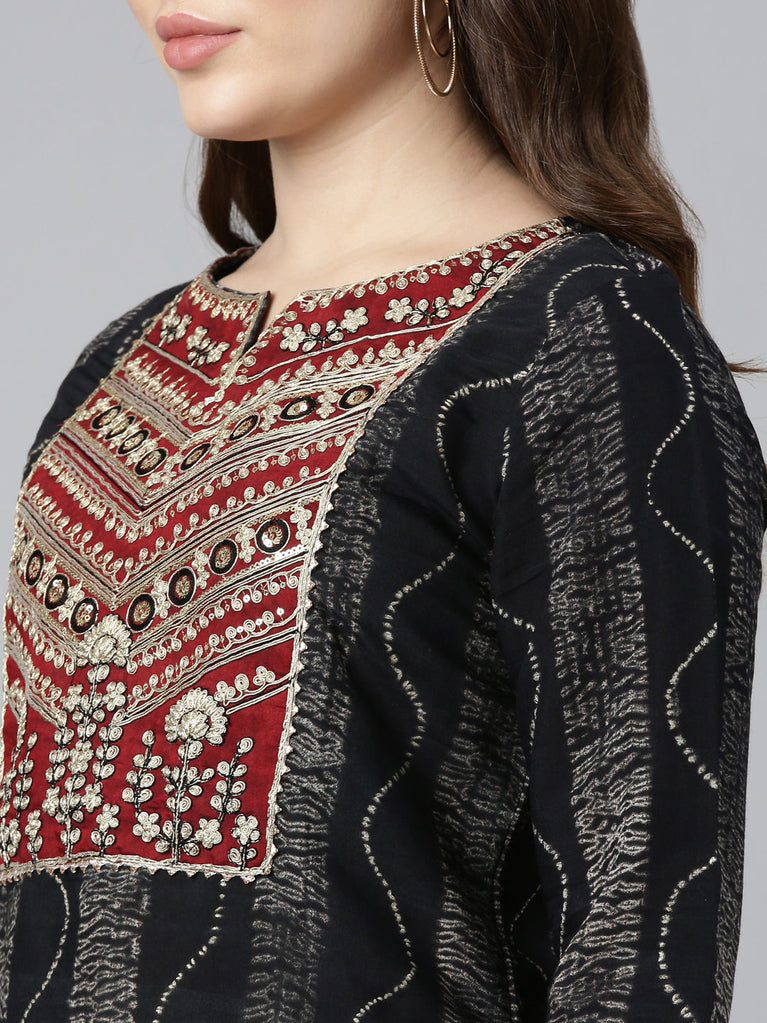 Neeru's Black Regular Straight Printed Kurta