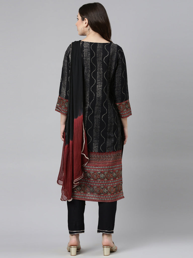 Neeru's Black Regular Straight Printed Readymade Suits