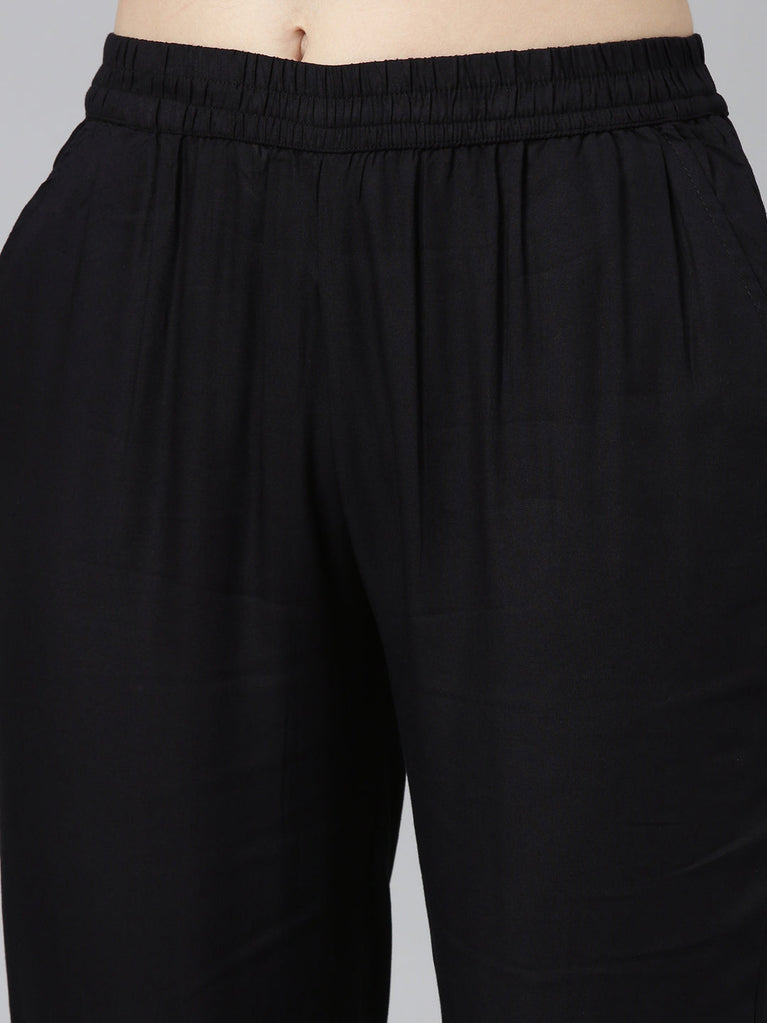 Neeru's Black Regulars -- Stylishly Straight And Printed To Perfection!