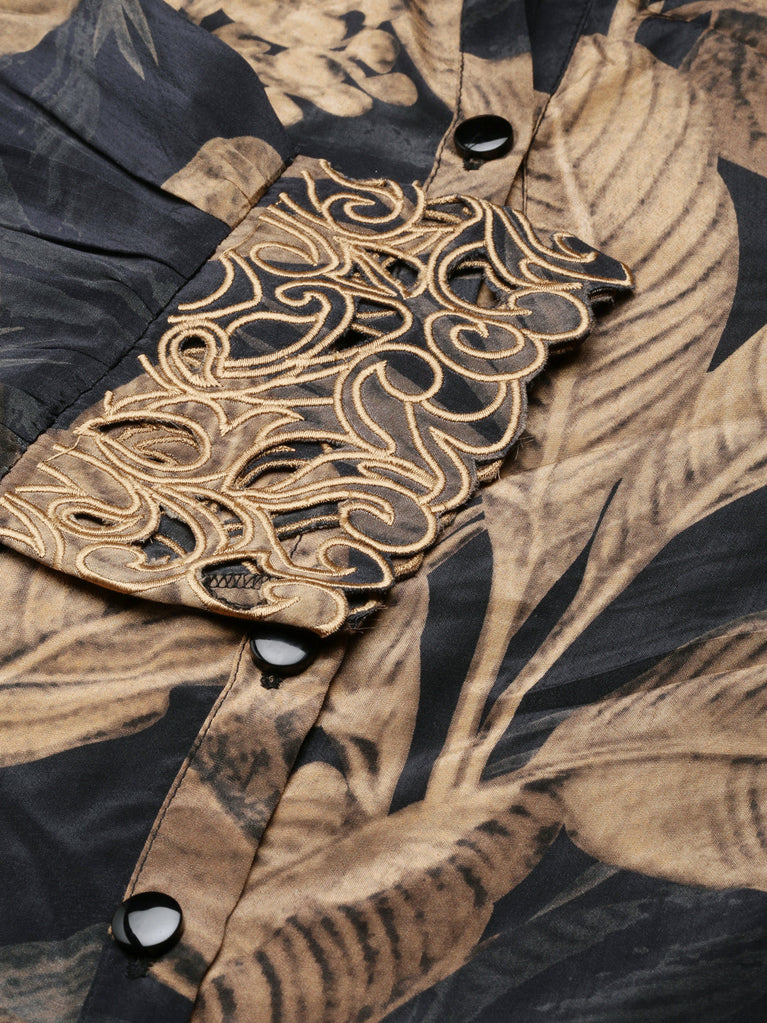 Neeru's Black Printed Floral Dress