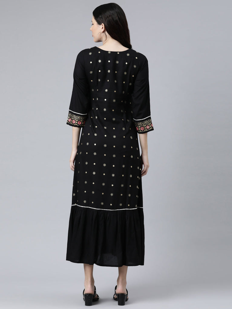 Neeru's Black Color Rayon Fabeic Dress