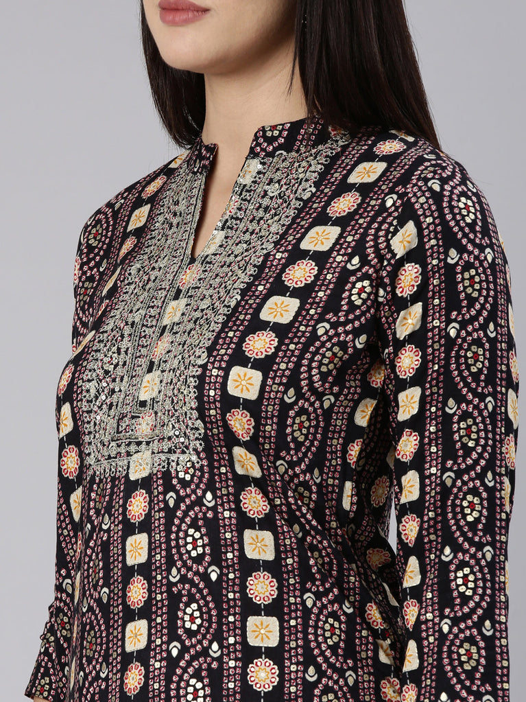 Neeru's Black Regular Straight Printed Kurta The Perfect Pick For A No-Fuss Yet Chic Look That'Ll Keep You Looking Good And Feeling Comfy. Get Ready To Turn Heads!