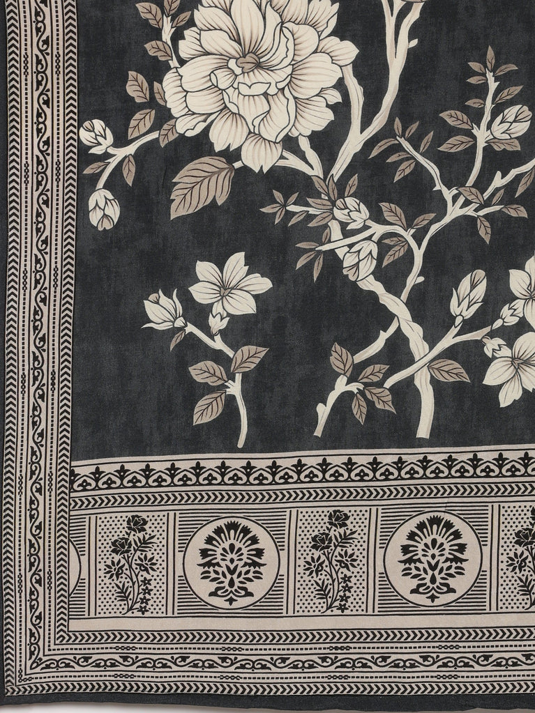 Elevate your wardrobe with this Grey Muslin Printed A-Line Three Piece Set, featuring a gracefully flared silhouette that ensures comfort and style. Crafted from breathable muslin fabric, its subtle prints add a refined touch, making it perfect for both casual and semi-formal occasions. This versatile set combines elegance and ease, offering a polished look with minimal effort.