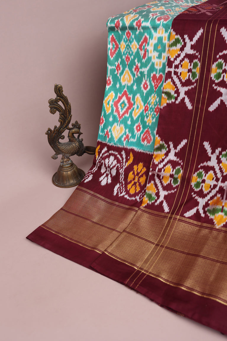 Green & gold Jimmy tissue saree with hand embroidery with ready made blouse