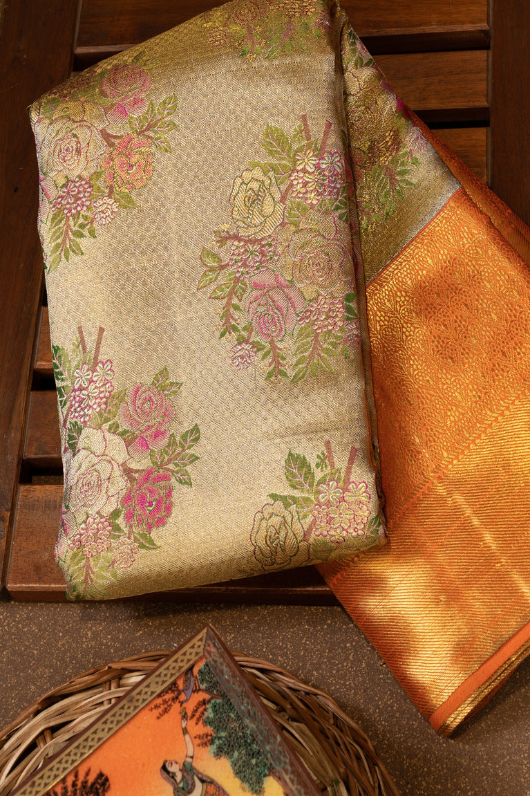 Mandir Beige & Saffron Kanchipuram Buttis Saree