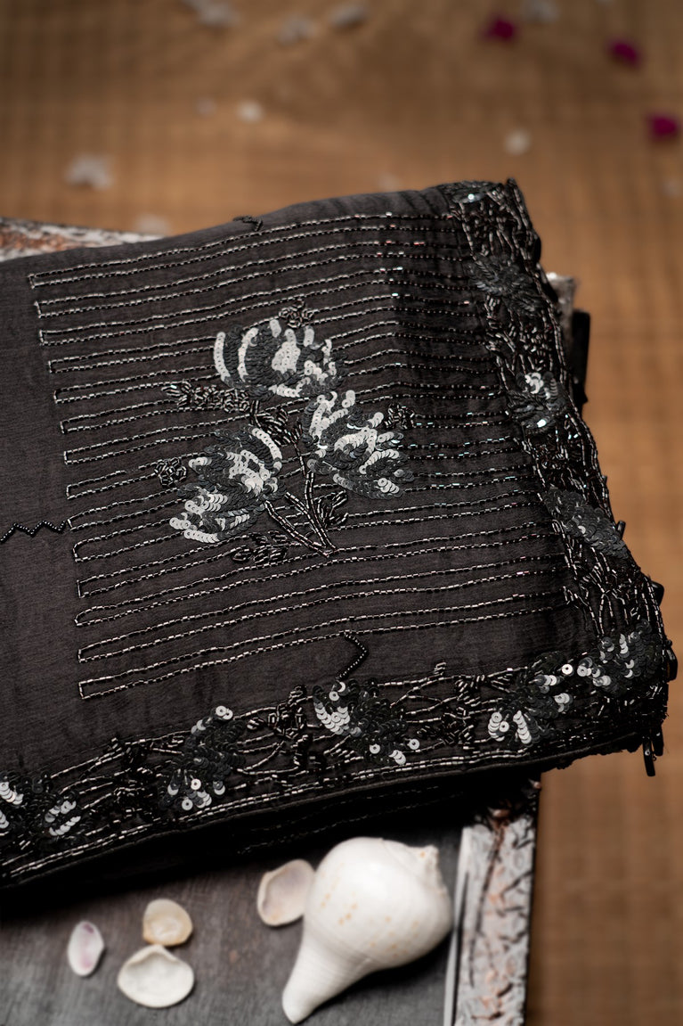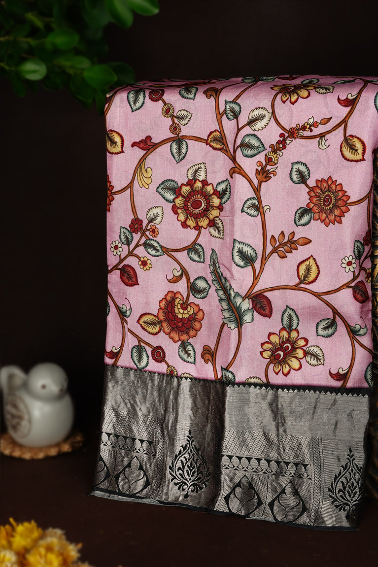 Mandir Baby Pink & Slate Grey Fancy Digital Print Saree