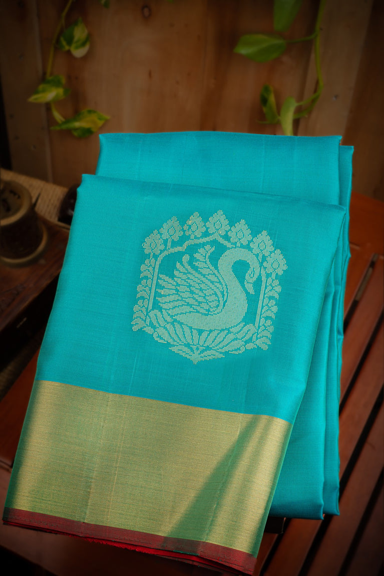 Mandir Aqua Blue & Red Coimbatore Motifs Saree